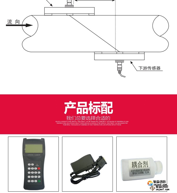 超声波流量计测量管径范围:0mm~300mm;WWW.XFJCYQ.COM精度:±1%用于检测消火栓系统和水喷淋系统的给水量以及消防竖管的流量分配。